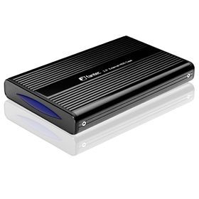 Hard disk preformated and instantly ready to use. Blue LED- indicator for Power on and HDD activity. 5,0V current supply via USB interface. Backup button at front for automatic backup, synchronization and data recovery. Attractive synthetic leather bag in black.