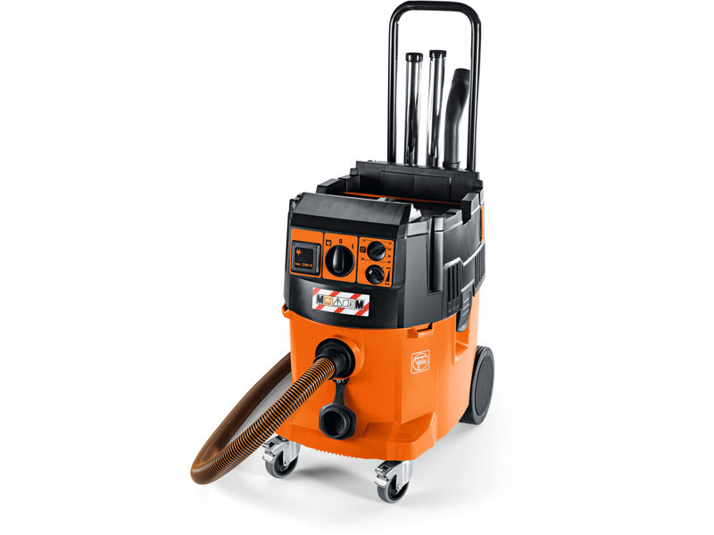 FEIN Dustex 35 MX. Input power: 1380 W, Capacity: 35 L, Airflow: 72 l/s. Weight: 13.5 kg