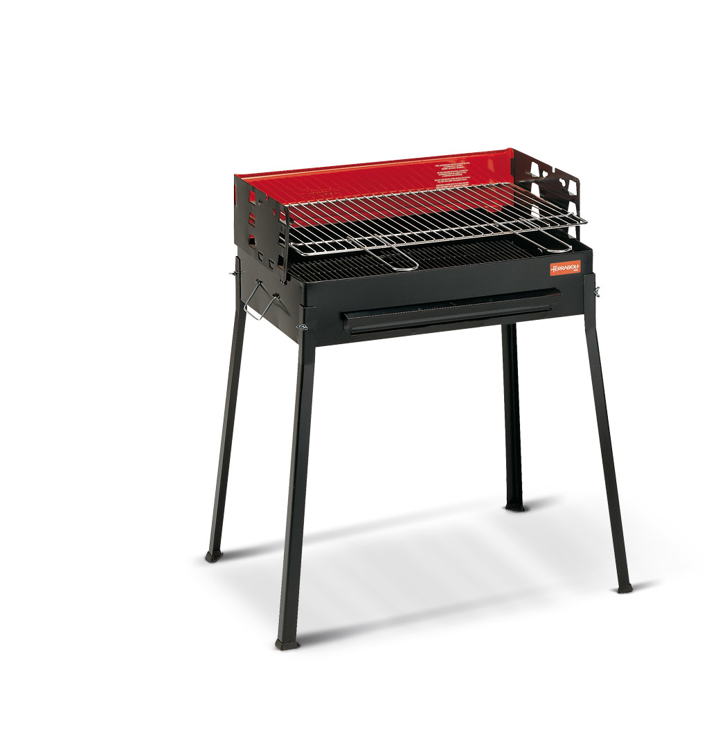 This rectangular barbecue has a chrome grill measuring 59 x 38 cm, as well as easily removable legs to make it smaller.