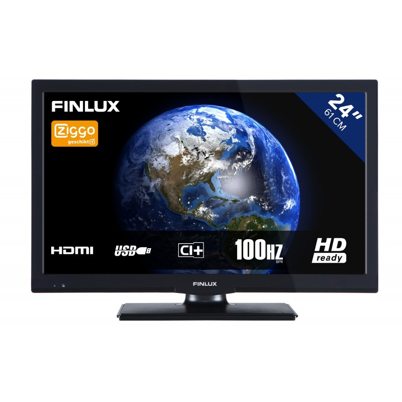 Finlux FL2422. Display diagonal: 61 cm (24"), HD type: HD, Display resolution: 1366 x 768 pixels. Analog signal format system: NTSC,PAL BG,SECAM B/G,SECAM D/K, Digital signal format system: DVB-C,DVB-T, Tuner type: Analog & digital. RMS rated power: 2.5 W. Audio formats supported: MP3,MP4,WMA, Image formats supported: BMP,JPEG XR, Video compression formats: AVI,FLV,MKV,VOB,WMV. Colour of product: Black