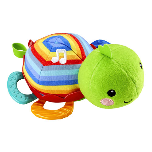 This plush turtle has come out of his shell to delight baby with music & teething relief! An adorable turtle pal to help soothe and entertain baby with 15 minutes of sweet music, soft knit shell and a variety of teething textures. He’s easy for little hands to grasp, hold and cuddle!