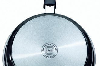 The Fissler allround pan maxeo comfort with its ceramic nonstick coating is extremely hard, heat-resistant up to 400 ºC and scratch-resistant. Not even metal kitchen accessories can harm the coating. These advantages plus the induction-compatible superthermic base and the safety handle with the hook-in function make the maxeo comfort pan a popular all-rounder.