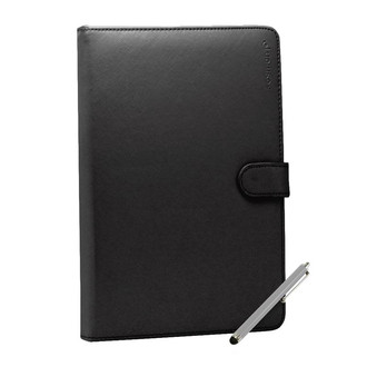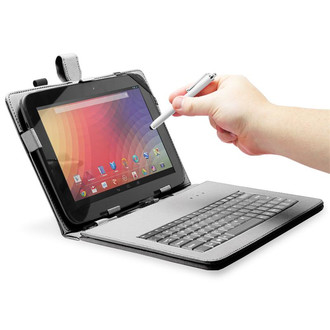 Protect your 10" Tablet with a Fosmon leather stand case with stylus and keyboard. Your device is no longer just a tablet, with this case it is easily converted into a laptop. It is constructed of synthetic leather to ensure long lasting durability and protection. The micro fiber interior protects your LCD screen while in the case. This case will keep your device in perfect condition. It helps guard against drops, bumps, scratches, smears, dust and dirt. It comes equipped with a built-in kickstand to view your device at the perfect angle. There is a built-in USB keyboard. This case also comes with a capacitive stylus. The button snap closure ensures the case stays closed when not in use. It is precisely engineered to fit your device perfectly, without the added bulk. You have full access to all ports and features of your device with the case on. This is the perfect case for those who want elegance and functionality along with superb protection.