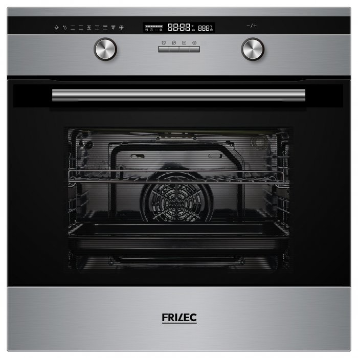 Frilec HAMBURG6070.3EB. Oven size: Medium, Oven type: Electric oven, Total oven(s) interior capacity: 70 L. Colour of product: Black, Stainless steel, Control type: Buttons, Rotary, Control position: Front. Energy efficiency class: A, Energy consumption (conventional): 0.99 kWh, Energy consumption (forced convection): 0.89 kWh. Width: 575 mm, Depth: 595 mm, Height: 595 mm