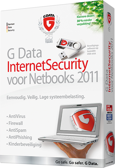 G DATA G Data InternetSecurity 2011 voor netbooks NL. Software type: Box, Number of years: 1 year(s). Minimum hard disk space: 250 MB, Minimum RAM: 512 MB. Language version: Dutch