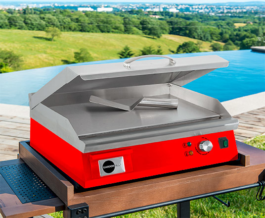 Garden All BBplancha PRO 550. Form factor: Tabletop, Colour of product: Red, Stainless steel, Cooking surface shape: Rectangular. Width: 550 mm, Depth: 450 mm, Height: 210 mm