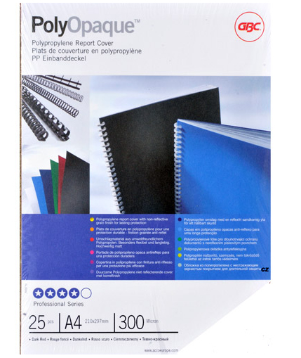 Made from high quality, 300-micron polypropylene, PolyOpaque™ Covers are robust and scratch-resistant making them ideal as back pages for frequently handled documents requiring a premium finish. Featuring a slight 'sand' grain effect on one side and a smooth reverse, they add ‘touch’ appeal to bound documents. PolyOpaque™ Covers are suitable for all binding styles and are recyclable.