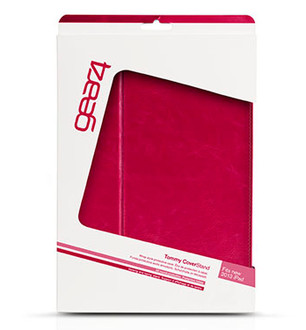 A stylish, retro looking CoverStand providing two viewing angles . The iPad is held securely inside by a plastic case. Candy Pink nanofibre fabric inside.