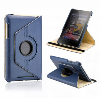 Dark Blue 360 Degree Rotating PU Leather Case Cover Swivel Stand for Google Nexus 7 Asus Tablet (Does not fit 2013 Nexus 7)