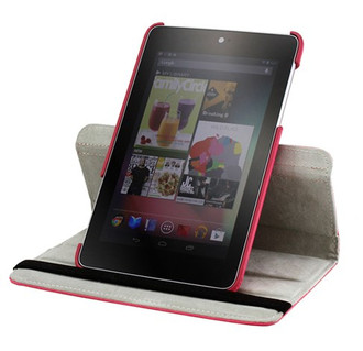 Hot Pink 360 Degree Rotating PU Leather Case Cover Swivel Stand for Google Nexus 7 Asus Tablet (Does not fot 2013 Nexus 7)