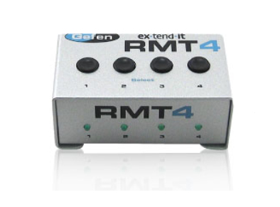 The EXT-RMT-4 cabled remote control lets you select and control up to four A/V sources and display devices using your Gefen Switcher or Gefen Matrix Switcher. The EXT-RMT-4 Remote uses widely available CAT5/CAT6 network cable to achieve control at distances of up to 1000 feet away from the Switcher unit.