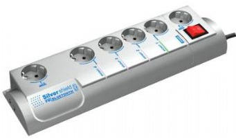 Silver shield with 4 sockets manageable via Bluetooth (wireless, from computer, mobile phone or any other bluetooth device). Up to 10 meters distance. First bluetooth intelligent sockets in the world.