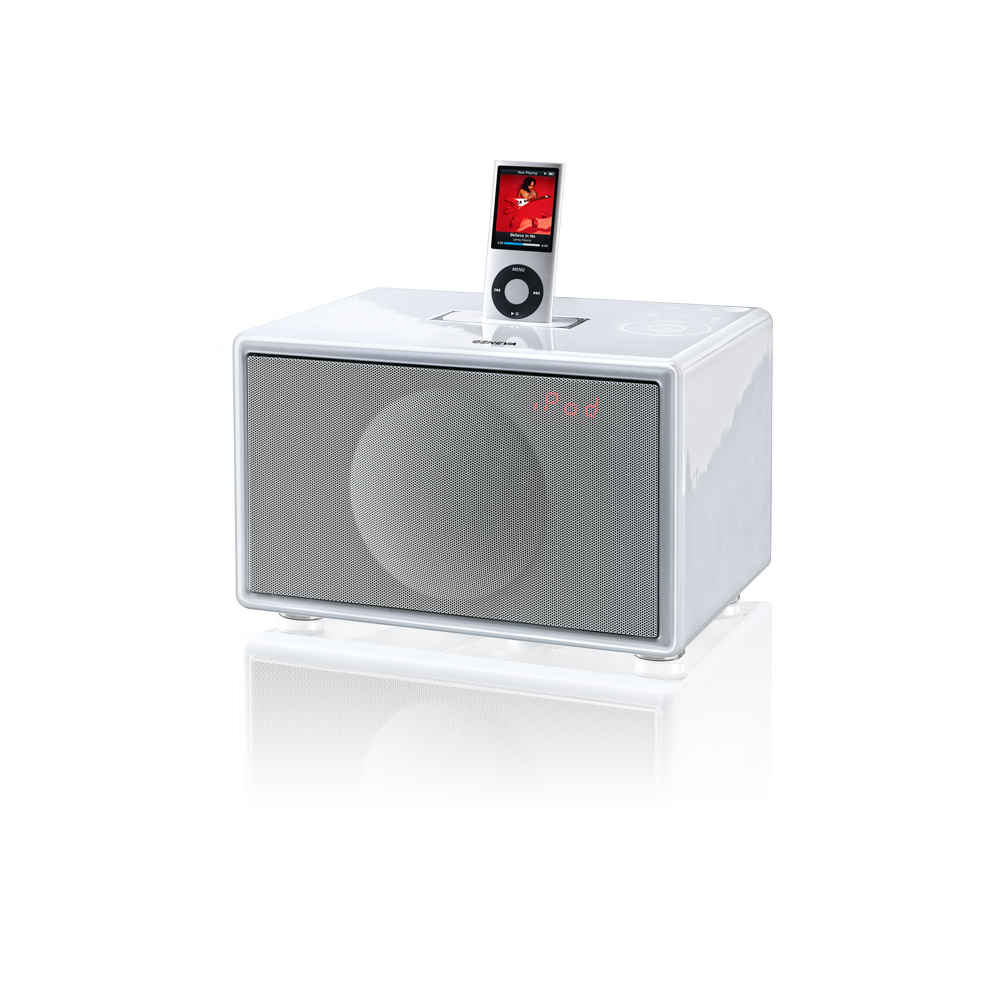 Sound System Model S / White, iPod/iPhone, FM, Speakers, Amplifier. All-in-one