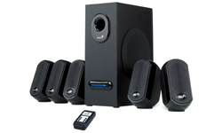 SW-5.1 1010 delivers impressive booming bass with a 4” driver in the ultra-rigid MDF wood case. And the stylish oblique satellite speakers create better acoustics for full surround effect. You can enjoy clear and wonderful sound in a wider dynamic range. And the color-coded cable plugs make it easy to connect to a PC 5.1 channel sound card. Plus the convenient 2.0ch input lets you hear music from a MP3/CD player, iPod or Notebook.