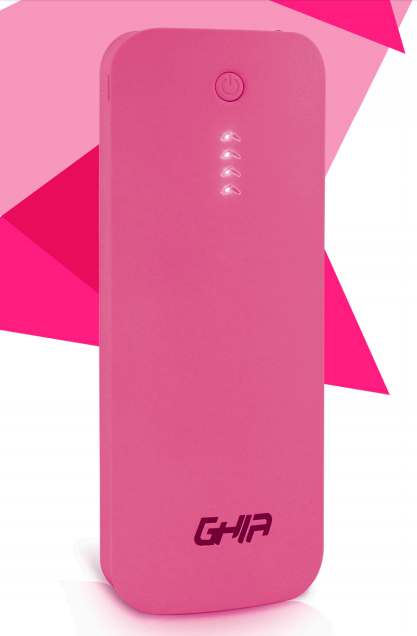 Ghia GAC-029. Colour of product: Pink, Housing material: Plastic, Charger compatibility: Universal. Battery technology: Polymer, Battery capacity: 12000 mAh, Charging source: USB. LED indicators: Status. Width: 65 mm, Depth: 25 mm, Height: 165 mm