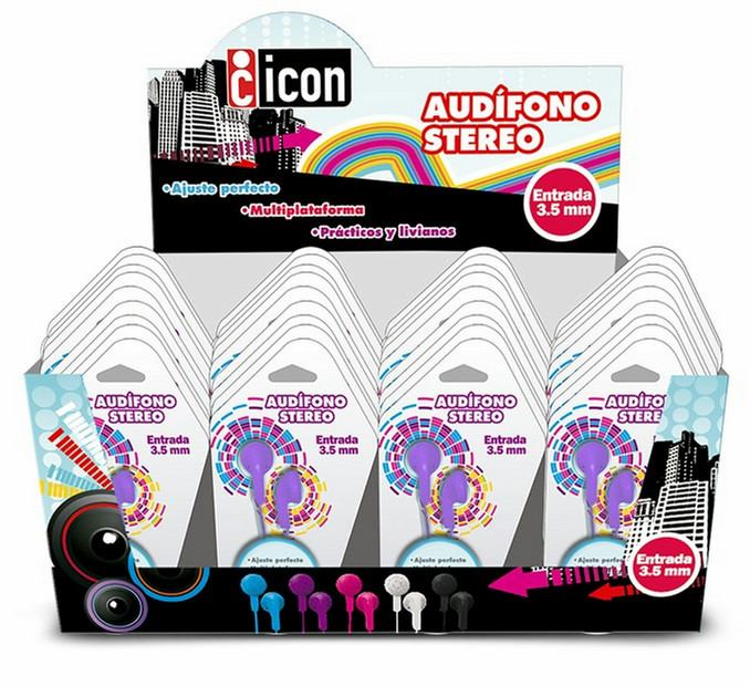 Ginga ICAUD-DISPLAY48. Headset type: Monaural, Wearing style: In-ear, Colour of product: Multicolour. Connectivity technology: Wired. Interface type: 3.5 mm (1/8"). Ear coupling: Intraaural. Number of products included: 48 pc(s)