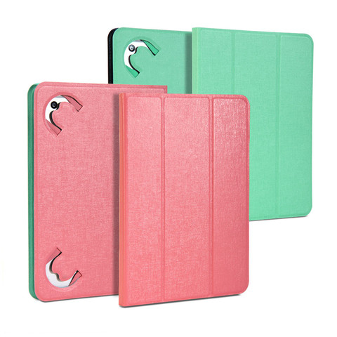 Two looks in a flip! With a double-sided, fully reversible design, this case offers the flexibility to switch from a preppy pink to a sweet mint green look while offering bulk free damage defense with elastic bands holding your device in place. The cover folds back for single-handed use with landscape or portrait viewing and can be adjusted to an angle for hands free viewing.