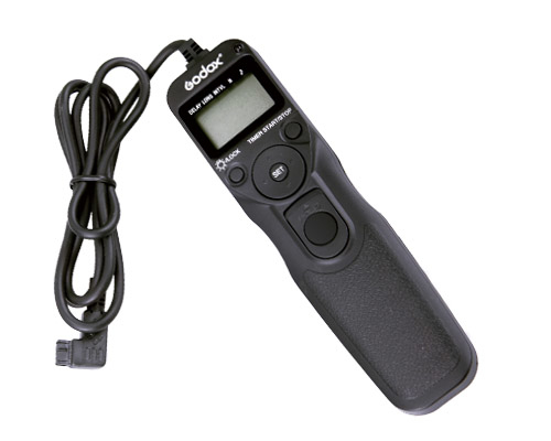 1 s - 99 h, LCD, Black GODOX digital timer remote is suited to a variety of tasks,including precise control over delay shutter, exposure time,interval, number of shots and many more functions.Shutter speed can be selected with the camera if desired. It provides delayed shutter release,interval release, time exposure to the second, and continuous shooting to preset limits.The time can be preset from 1 second to 99 hours. You to easily enter numeric settings on the dial pannel.Settings are viewed on an LCD screen.The LCD panel can be illuminated,enabling you to operate even in dark area.You can take photographs manually using the shutter-release button on the digital timer remote. Photographs can be taken manually even the timer is running.