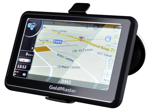 GoldMaster NAV-510. Map coverage: Turkey, Map view options: 2D/3D. Display diagonal: 12.7 cm (5"), Display: TFT. Storage media type: Flash, Internal storage capacity: 2 GB, Compatible memory cards: MicroSD (TransFlash). Processor model: SiRFatlasV, Processor frequency: 500 MHz. Form factor: Handheld/Fixed, Colour of product: Black