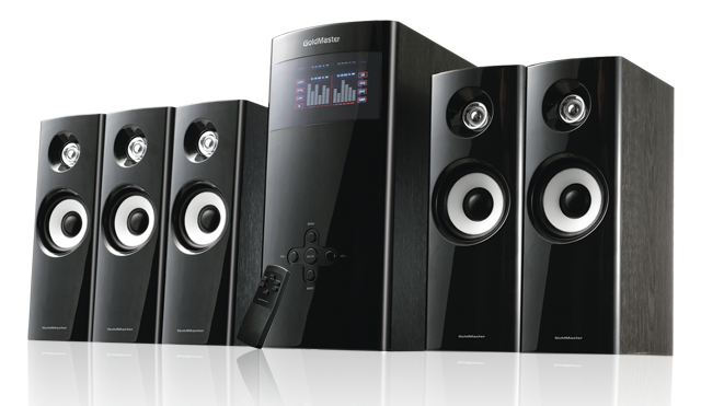GoldMaster REVO-35. Audio output channels: 5.1, RMS rated power: 105 W, Recommended usage: Universal. Satellite speakers RMS power: 75 W, Satellite speaker tweeter size: 3.81 cm (1.5"), Satellite speaker mid-range driver size: 7.62 cm (3"). Front speakers RMS power: 15 W, Front speaker tweeter size: 3.81 cm (1.5"), Front speaker mid-range driver size: 7.62 cm (3"). Center speaker RMS power: 15 W, Center speaker tweeter size: 3.81 cm (1.5"), Center speaker mid-range driver size: 7.62 cm (3"). Subwoofer RMS power: 30 W, Subwoofer driver size: 13.3 cm (5.25")