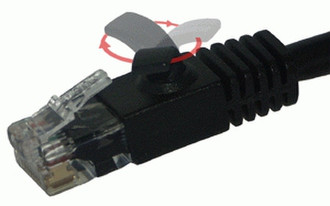 GoldX networking cables stand out from the rest of the networking cables. These cables have the unique ability to switch from snag-less to standard clips and then switch back. This switch can be done by rotating the snag-less cover out of the way or removing it totally. Once the clip has been removed, it can be replaced just as easily. Ethernet networks are the most common type of networks in existence today. Most of them currently run over twisted pair (UTP) cable. In this network, cross connections between walls and computers, patch panels and equipment, or between two pieces of equipment use patch cables. This cable is designed to go between a computer and the wall or between a patch panel and a piece of equipment. This GoldX® Offspring® patch cable is compliant with EIA/TIA 568 B.2 standard at a Enhanced Category 5 Level (commonly called Cat 5e). Cat 5e will support the following speed and protocols: 10 Megabit per second Ethernet (10Base-T), 100 Megabit per second fast Ethernet (100Base-TX) and 1 Gigabit per second gigabit Ethernet (1000Base-T). This cable is unique because of the patent pending snag less boot on the ends of the cable. This allows the user to remove the snag less feature, and then replace the snag less feature at will. If the user does not want to remove it, it can be rotated out of the way as well.