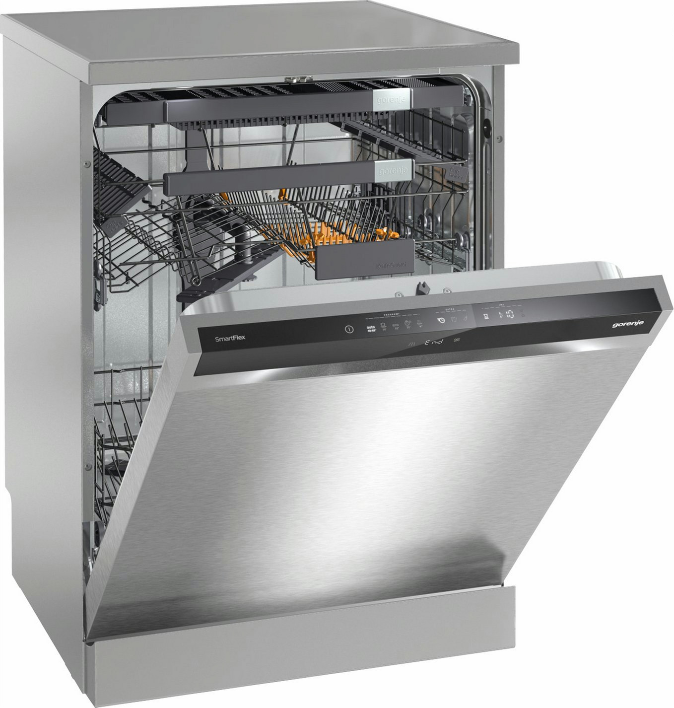 Gorenje GS66260X. Door colour: Grey,Metallic,Silver, Control type: Touch. Number of place settings: 16 place settings, Noise level: 45 dB, Drying class: A. Energy efficiency class: A+++, Energy consumption per cycle: 0.86 kWh, Water consumption per cycle: 9.5 L. Width: 600 mm, Depth: 596 mm, Height: 848 mm