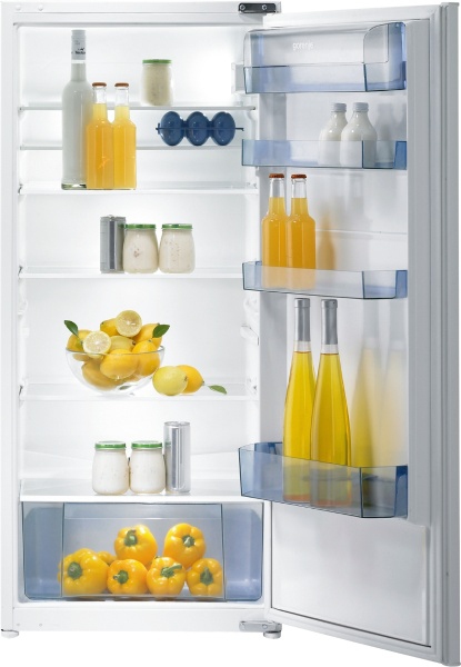 Gorenje RI41225. Case design: Built-in, Colour of product: White. Fridge net capacity: 217 L, Noise level: 41 dB. Annual energy consumption: 161 kWh, Energy usage: 0.44 kWh/24h. Width: 540 mm, Depth: 545 mm, Height: 1225 mm. Total net capacity: 219 L, Package dimensions (WxDxH): 585 x 650 x 128.5 mm, Installation compartment dimensions (WxDxH): 570 x 550 x 1225 mm