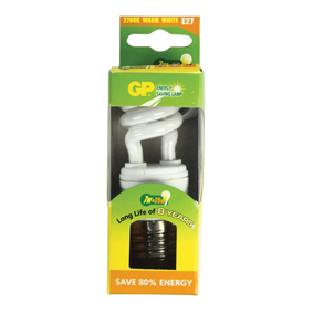 GP Batteries GPS1601. Bulb size: Spiral, Fitting/cap type: E27, Light colour: Warm white. Package type: Box