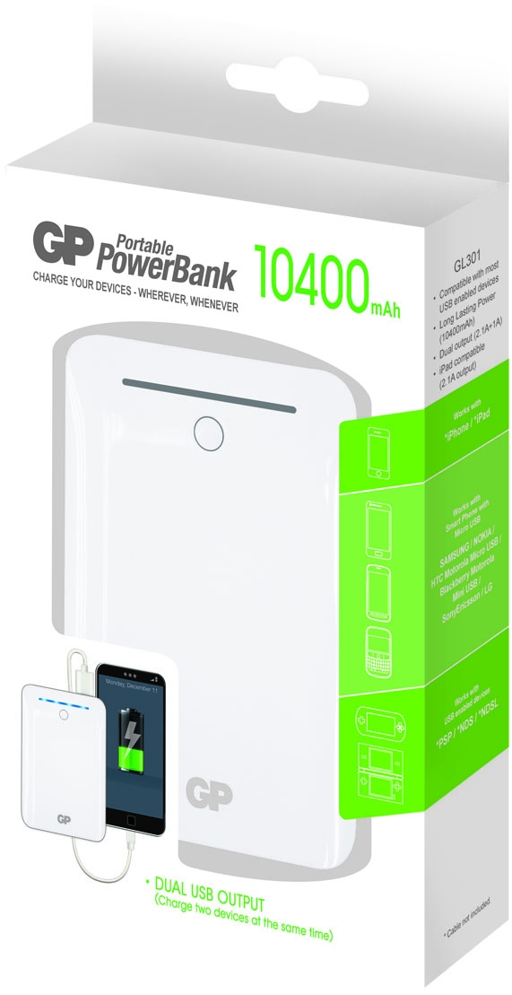 This multi-purpose battery pack is able to charge 2 devices at the same time, ranging from smartphones, gaming devices, MP3 players and even tablets. With a capacity of 10400 mAh, it can charge most tablets for around 2 times and therefore is the most powerful battery pack in the entire GP range.
