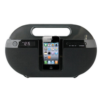 IBP391B - App-enhanced Boombox for iPhone/iPod, FM, LCD, 3.5mm Audio-In, Composite Video Out, 4x C