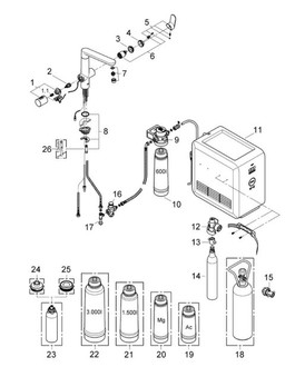 - GROHE Blue K7 single-lever sink mixer with filtration;