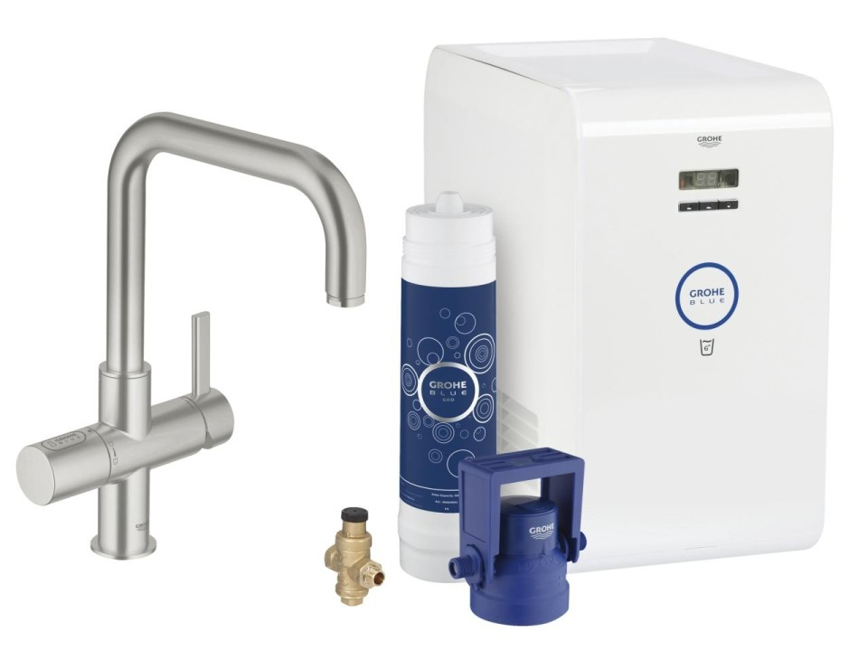 - GROHE Blue single-lever sink mixer with filter function;