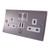 2 way UK power socket with USB charging plate, Brushed stainless
