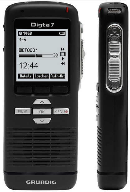 Like other digital hand-held dictation devices from Grundig Business Systems, the Digta 7 has a real internal memory. It can be protected by the unit's PIN. That, together with 256 bit encryption, provides maximum protection against the loss of sensitive data.