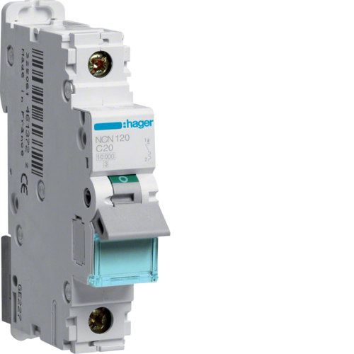 Hager NCN120. Rated current: 20 A. Coil voltage: 500 V