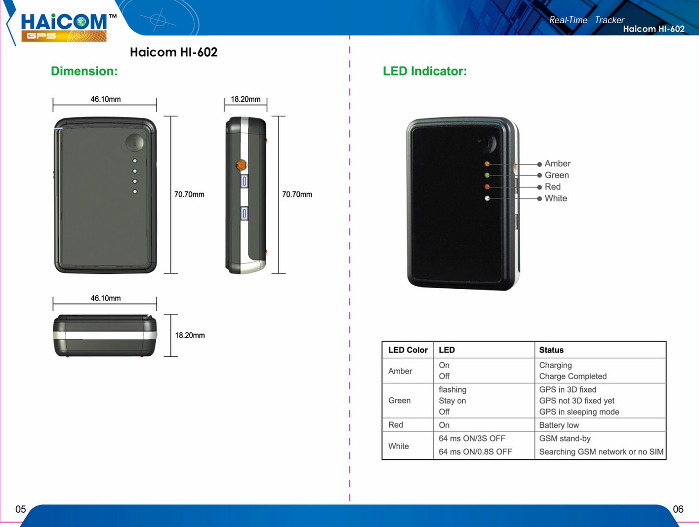 The HAICOM HI-602DT is a small (43x69x18mm), GSM GPRS DTMF SMS all in one based tracker Solution. The tracker includes both a GPS and GSM module and is an independent device similar to a mobile phone. The HAICOM HI-602DT Tracker has the following functionality: