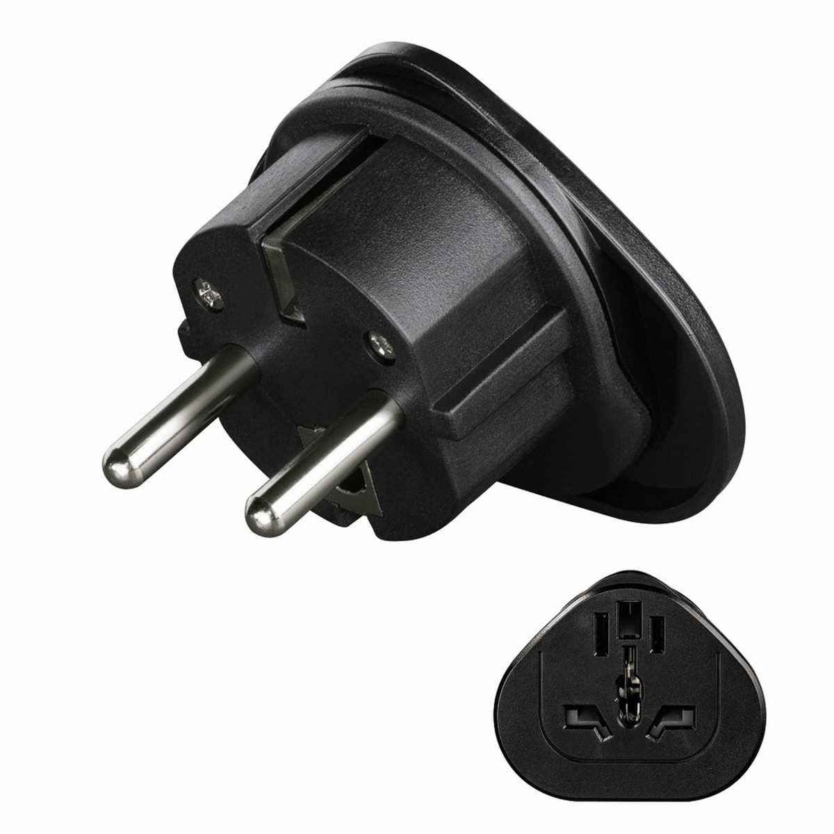 - Adapts from German sockets with earth contact to US, UK, Chinese, Italian, Swiss plugs