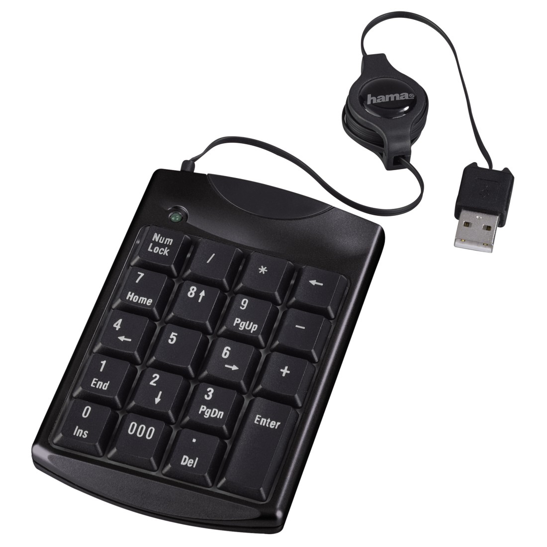 Hama's Slimline Keypad comes in both Black and Silver. It’s a numeric keypad, so helps to comfortably enter data onto a PC, or a notebook. The cable rolls-up so can be transferred anywhere, and also helps avoid cable clutter. Its lightweight, and connects via USB. Can be used with WIndows XP/Vista/7/8. It comes with soft touch keys, so its allows smooth and quiet keystrokes.