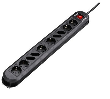 "Colour" 10-Way Power Strip, black, 3 m - For connecting up to ten electrical devices