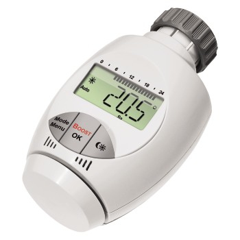 - Electronic radiator thermostat with preprogrammed, individually adjustable heating and cooling programme for time-controlled room temperature adjustment