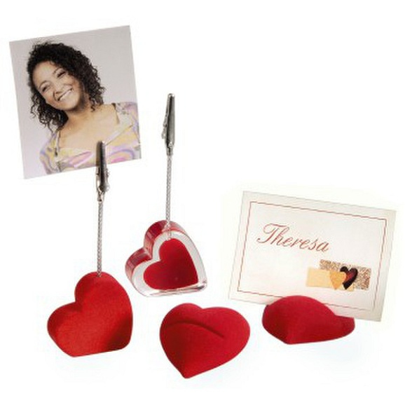 - 4 heart-shaped memo holders in velvet - 4 heart-shaped memo holders in velvet with clip - 4 heart-shaped memo holders in acrylic with clip - Ideal for name and place cards, photos