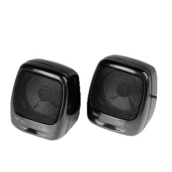 The compact mini stereo loudspeaker-system MB-20 fits in every suitcase and is a constant cheerer on journeys. This energy-loaded companion presents itself space-saving and effective, particularly because the 5W boxes get by without additional current supply. Connected with the CD player, the Walkman or the MP3 player yet you have lush sound. Techno, Pop, Rock the loudspeaker doesn´t care. You also not? However, the portable MB-20 convinces not only by its enormous mobility but also by its handy format and its felicitous design. Just take the good mood along with you!