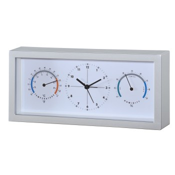 - For monitoring the temperature and air humidity, with a clock. - Sweep second hand that keeps the clock quiet. - Built-in alarm function.