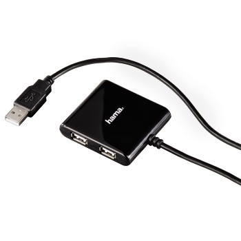 The fantastic USB 2.0 Hub from Hama, suitable for Windows 2000/XP/Vista/7 und Mac OS 9.x and downward compatible with USB 1.1, has been specifically designed to increase the number of USB ports on your computer by 4. This means your printers, scanners, mouse, keyboard and more can all be connected up to your PC or notebook at the same time. This is made possible via an integrated, high quality USB connecting cable, boasting a data transfer rate of up to an impressive 480 Mbit/s.