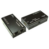 The AB 7725/26 extenders use CAT5E as transmission media.The package contains the sender, receiver and power supply (not shown in the image).