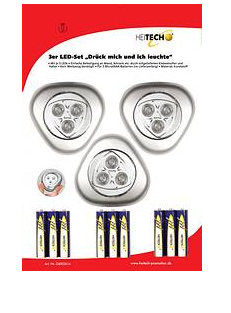 Each with 3 LEDs Easy fixing on wall, board etc. through provided adhesive strip and holder No tools required! For 3 Micro/AAA-Batteries (included)