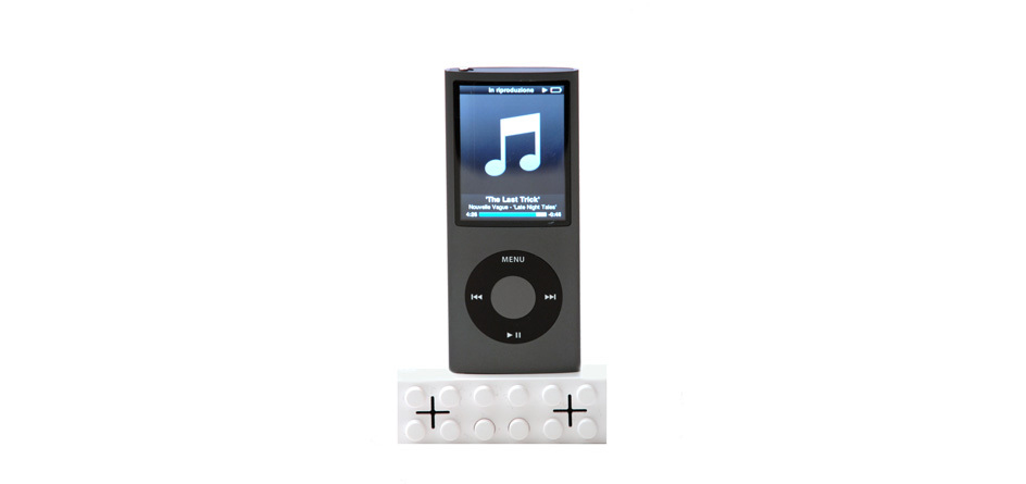 Hi-brick has a cool retro shape, looks like little brick, and holds your iPod® up tight giving out enough volume to keep you rockin'. Perfect for your cubicle, traveling or the bathroom. No batteries needed. This speaker attaches to your iPod®, iPhone® through a Dock Connector.