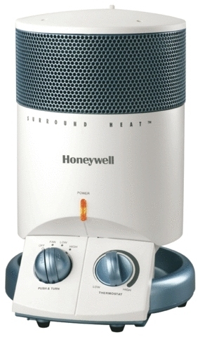 The 360 degree surround heating design makes this a perfect unit to place in the middle of the room to help keep everyone comfortable. This heater features an adjustable thermostat and two heat settings for personal comfort control. Safety features include a child-resistant power control, a tip-over switch that disables the unit in the event that it is tipped over, flame resistant plastic and overheat protection. This model also offers the option of 180 degree, or front-only, heating for placement along the wall. This white heater also includes metallic blue accents for a modern look.