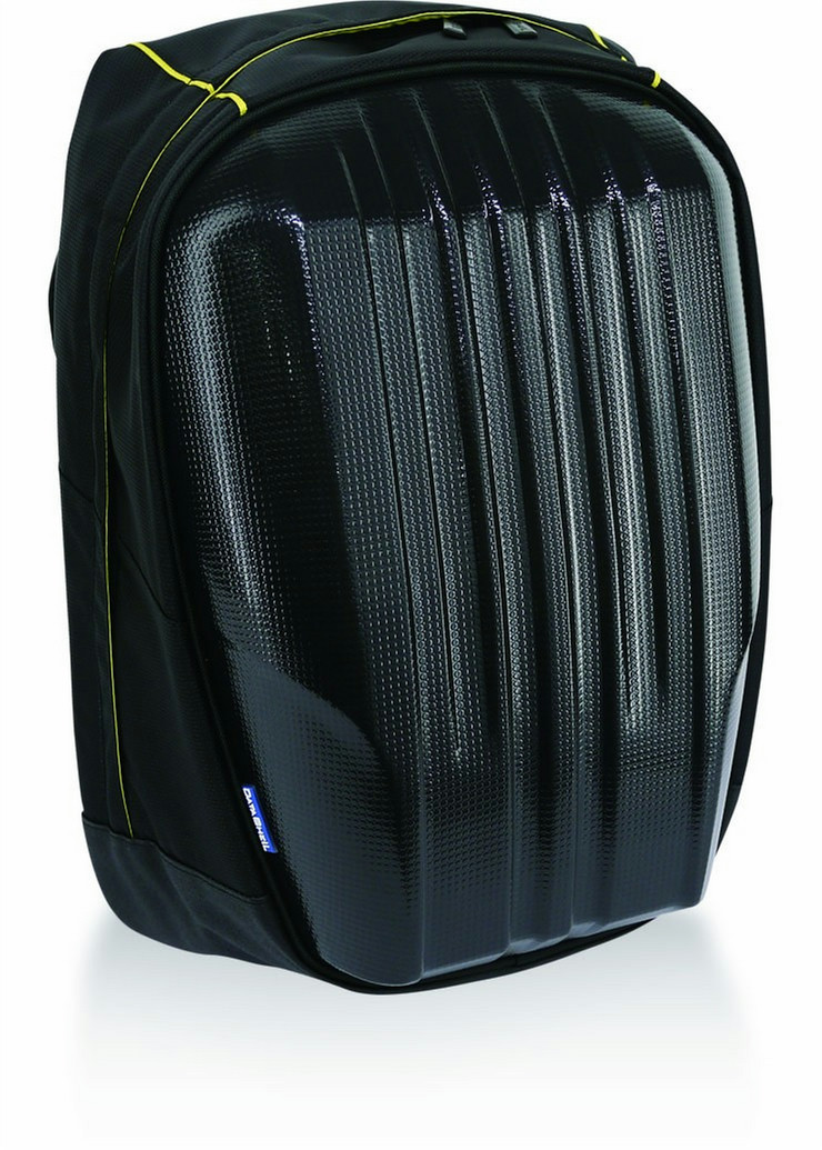 Hard shell laptop backpack with heavily padded back panels and breathable mesh for ergonomic support and comfort. ABS Plastic has been equipped on the front to protect inner contents from impacts while durable and water repellent nylon fabric materials has been used to keep water out. Fits up to 15.6" laptops.