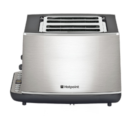 Electronic control technology to set 8 browning levels. To satisfy everyone, the Hotpoint 4 Slots Digital Toaster allows you to choose from 8 different degrees of toasting, all perfectly regulated for even colour. For a light golden toast or a really brown and crunchy one. Completed with defrost, re-heat and bagel function, as well as two folding warming racks, it's also perfect for paninis, croissants and bagels.